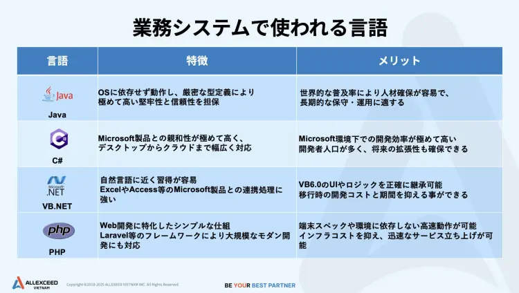 【プロが選ぶ】業務システム開発で使われる言語 ー Java・C#・VB.NET・PHPについて徹底比較 事例でわかる最適解